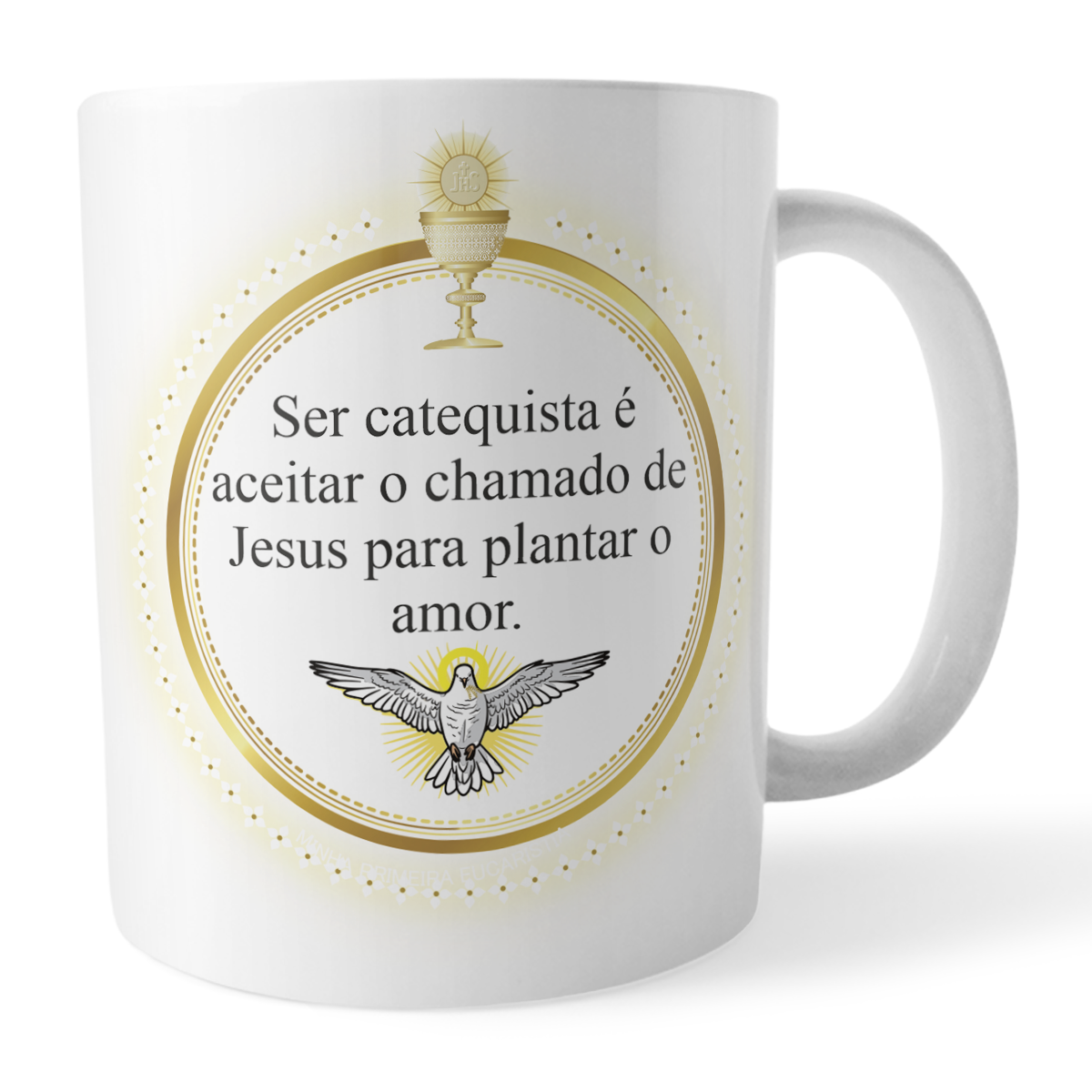 caneca catequese, caneca catequista, presente para catequista, caneca mensagem religiosa, caneca igreja católica, caneca eucaristia, caneca símbolo eucarístico, caneca fé, caneca cerâmica 325ml