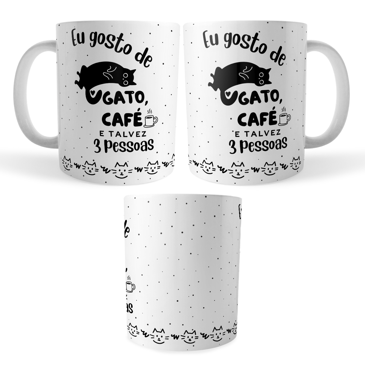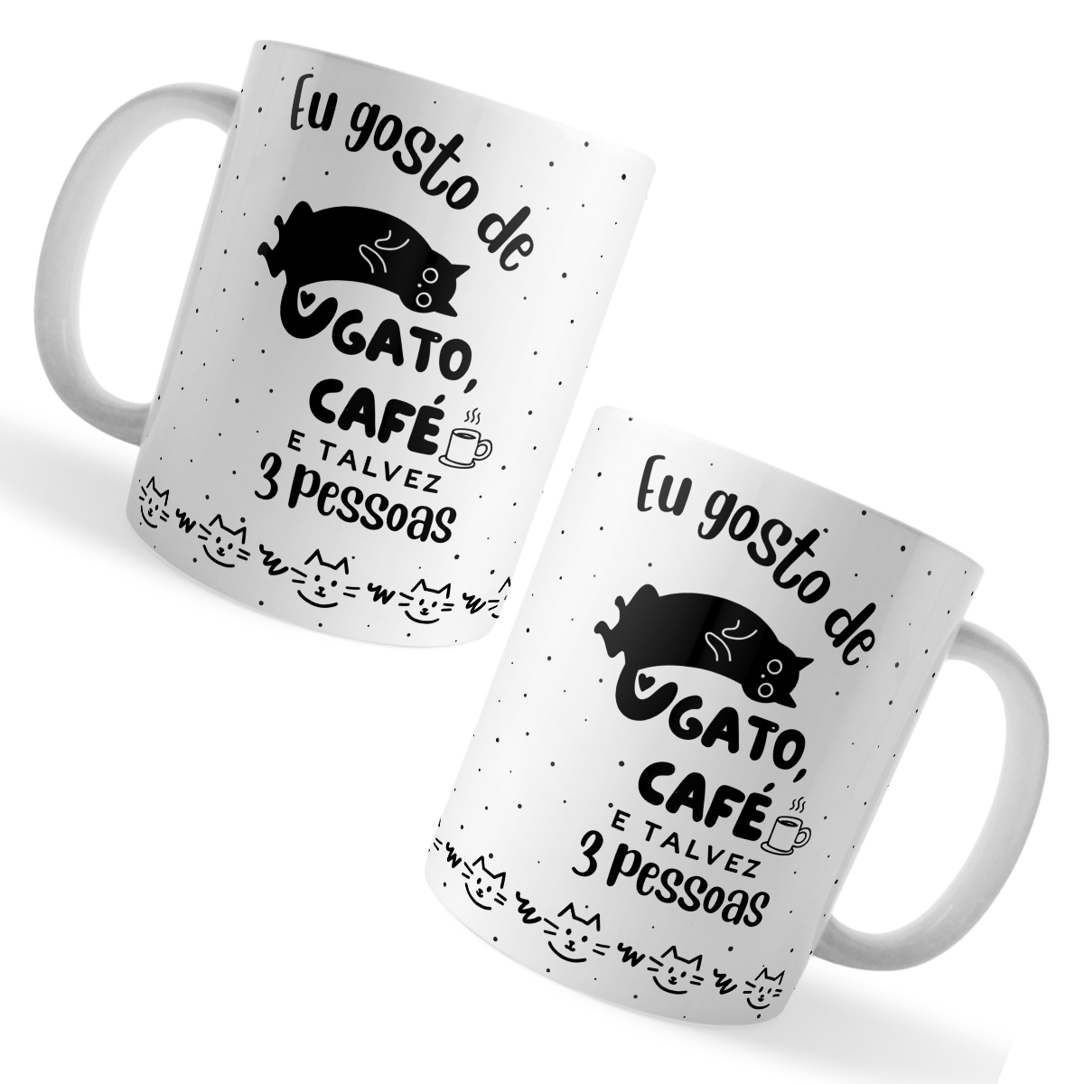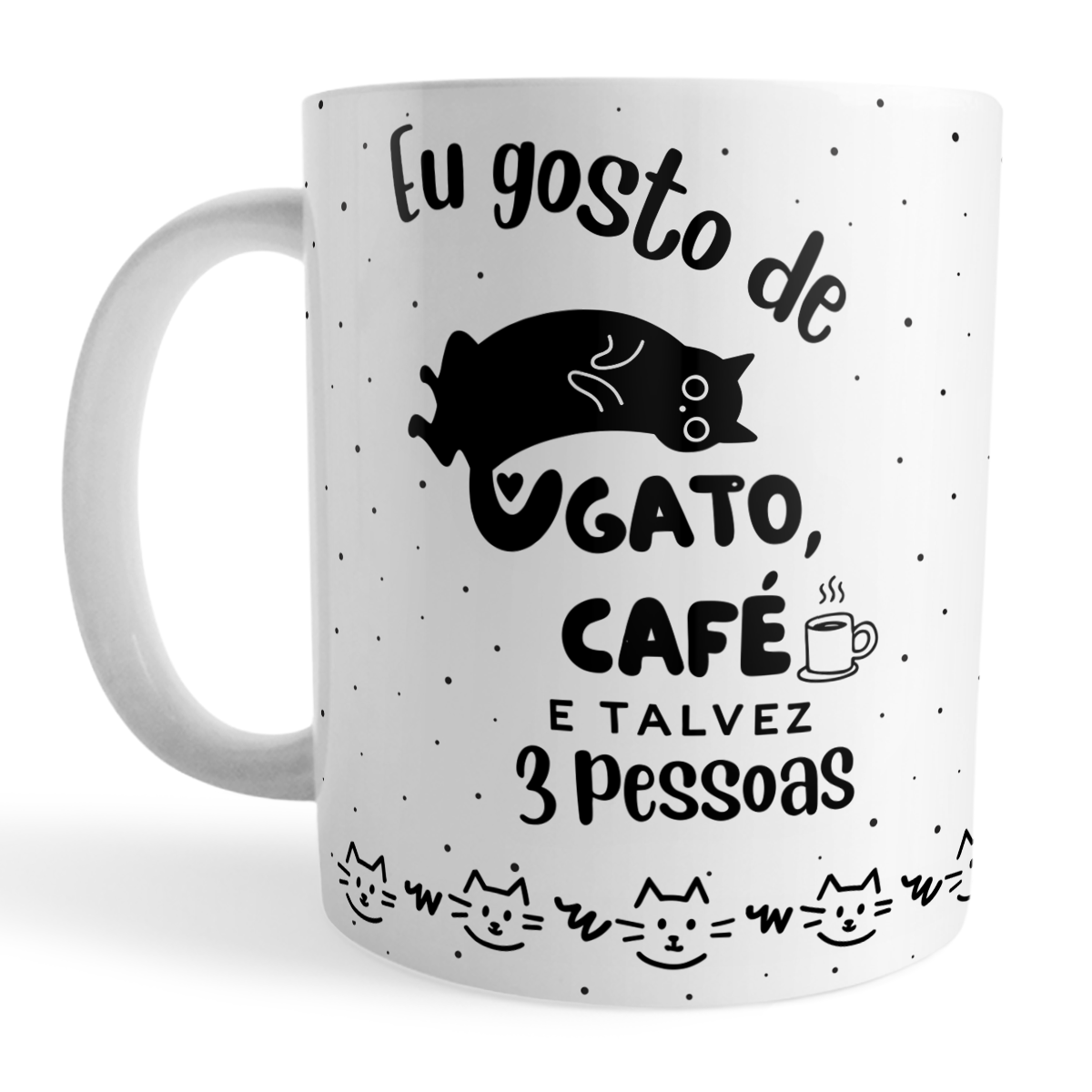 A caneca perfeita para quem é verdadeiramente do time dos gatos, do café e da vida social bem selecionada, com a frase divertida “Eu gosto de gato, café e talvez 3 pessoas”. Com ilustração fofa de gatinho e detalhes em preto sobre fundo branco, é ideal para começar o dia com humor e personalidade.