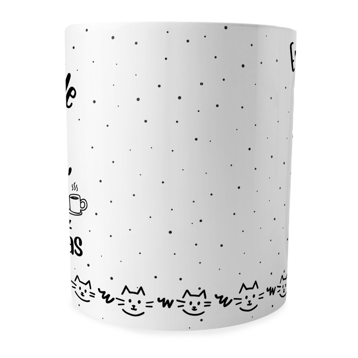 Estampa: “Eu gosto de gato, café e talvez 3 pessoas” com ilustração de gato e detalhes em preto