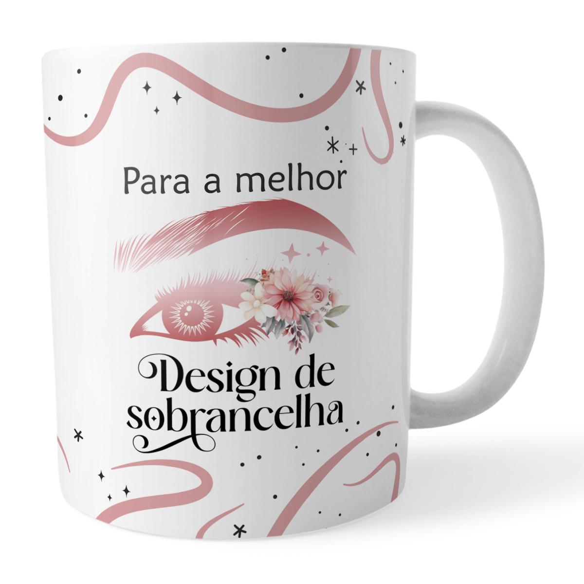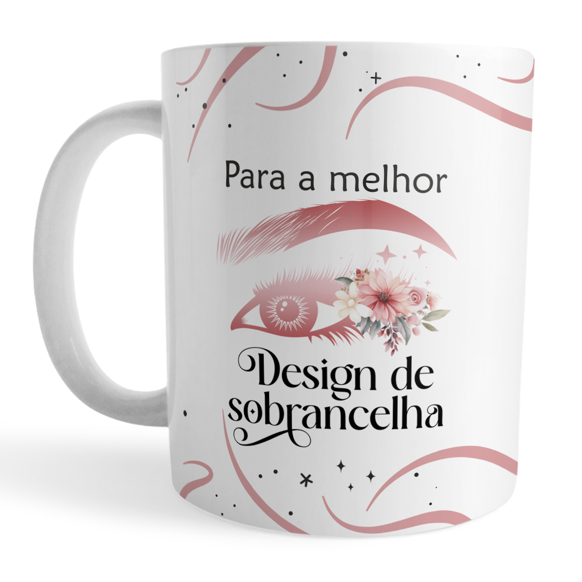 Caneca com frase “Para a melhor Design de sobrancelha” em arte floral sofisticada.
