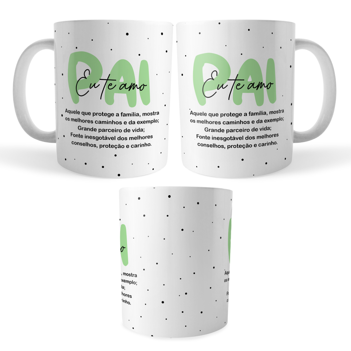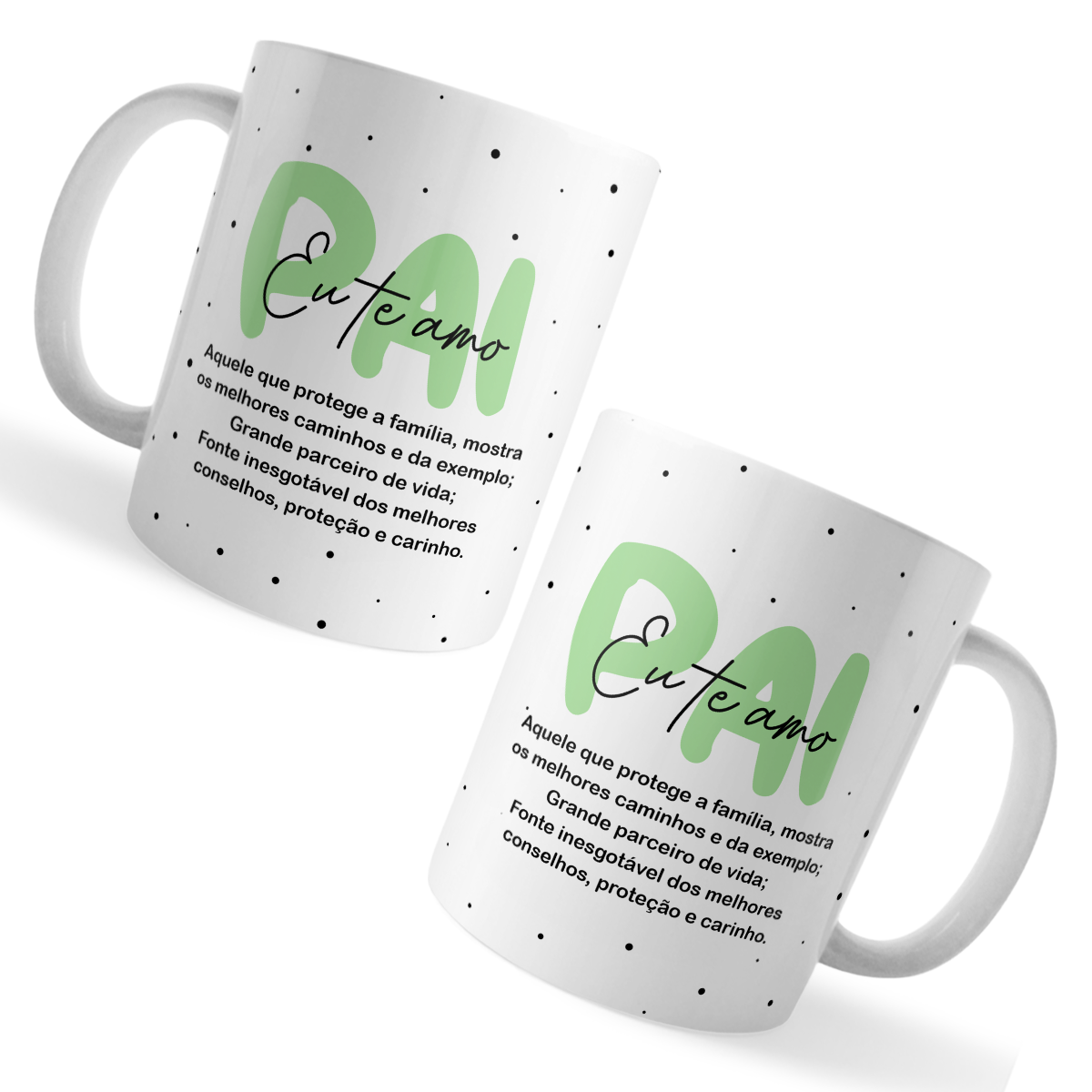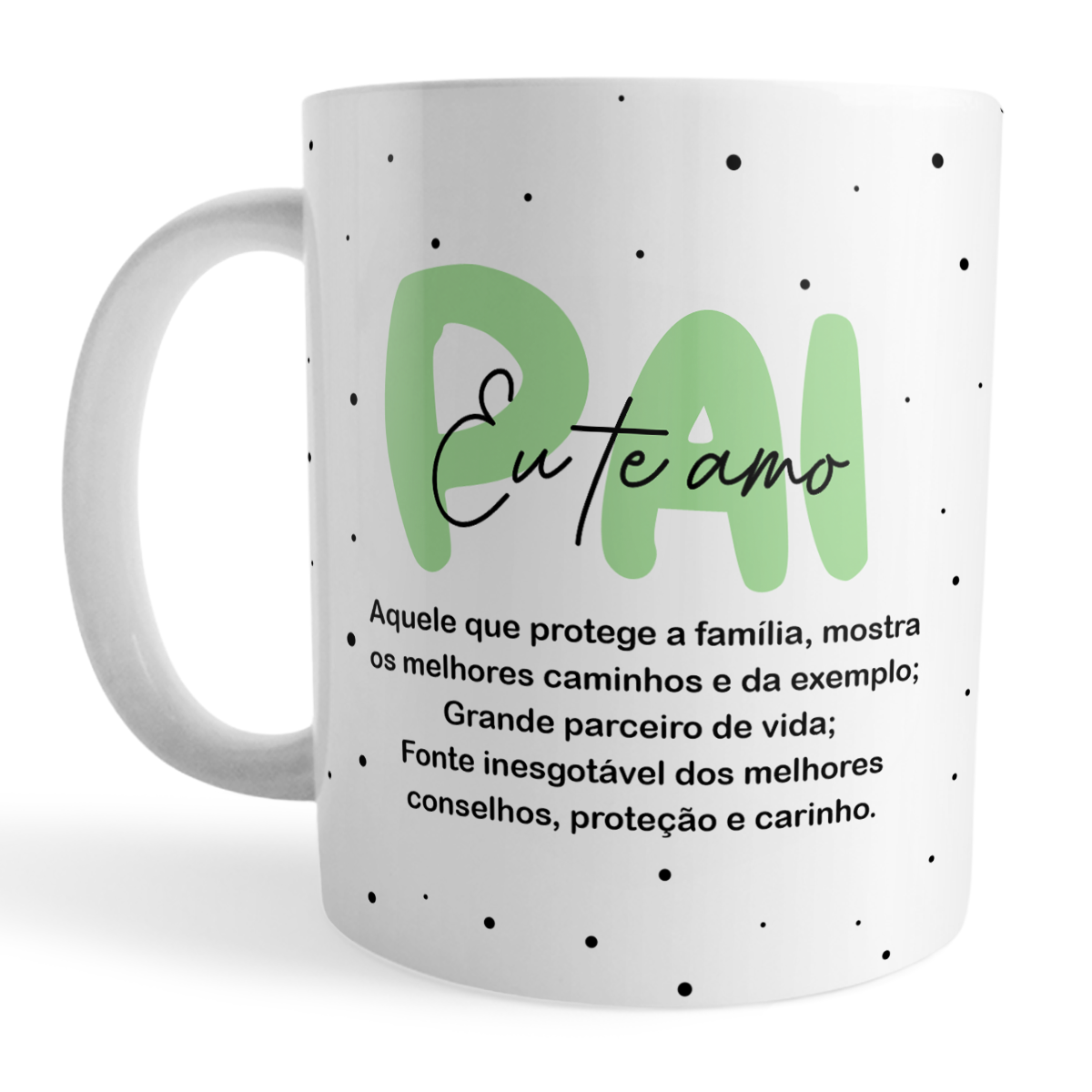 Demonstre todo carinho e admiração com esta caneca xicara especial: “Pai Eu Te Amo”. Com arte pronta moderna em verde e preto, traz uma mensagem emocionante que valoriza cada papel do pai na família: aquele que protege, aconselha e é parceiro em todos os momentos. Perfeita para o Dia dos Pais, aniversário ou para surpreender em qualquer ocasião, tornando cada momento ainda mais especial.
