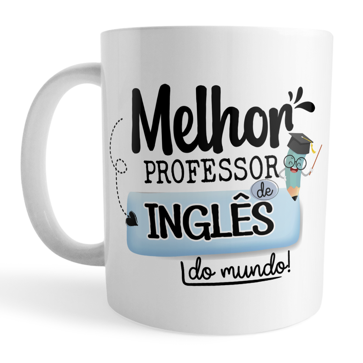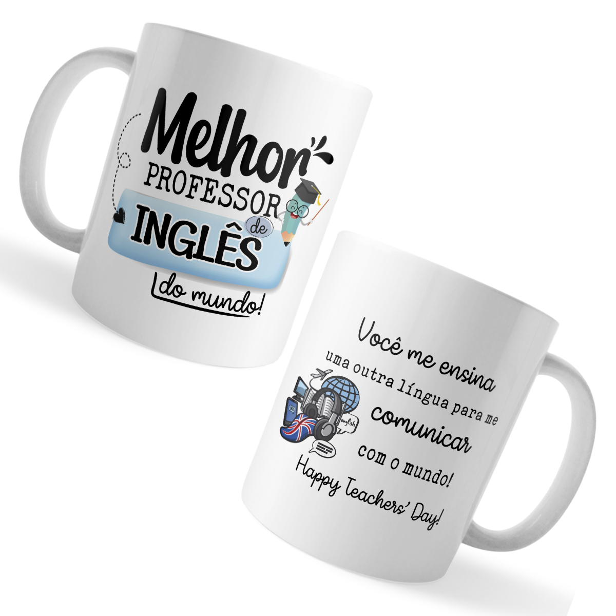 A caneca celebra quem abre portas para o mundo por meio do idioma, com arte pronta que destaca “Melhor Professor de Inglês do mundo!”. É um presente útil e carinhoso para Dia dos Professores, encerramento do ano letivo, formaturas e agradecimentos especiais.