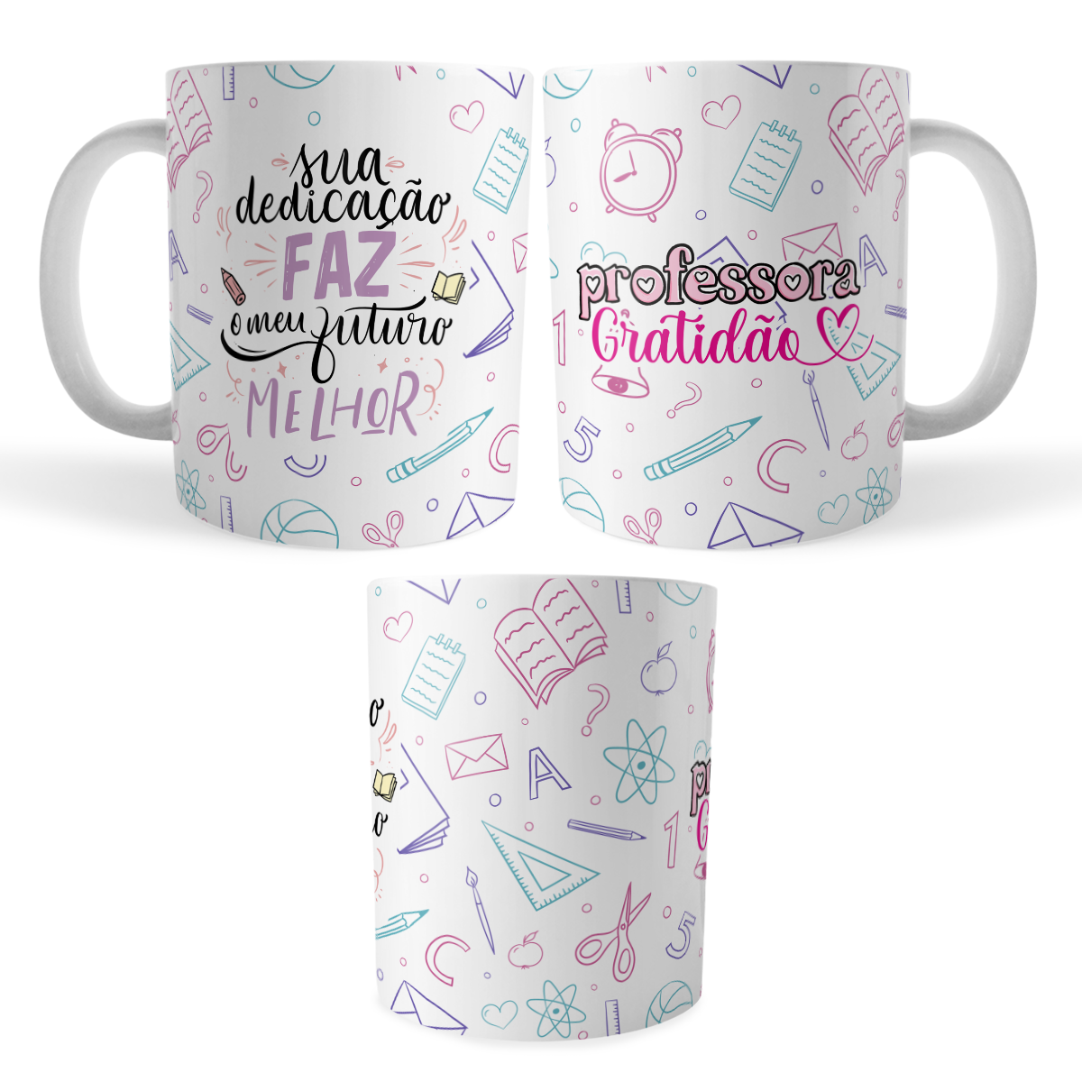 caneca professora gratidão, caneca dedicação professora, caneca presente professora, caneca dia dos professores, caneca arte pronta, caneca agradecimento, caneca cerâmica 325ml