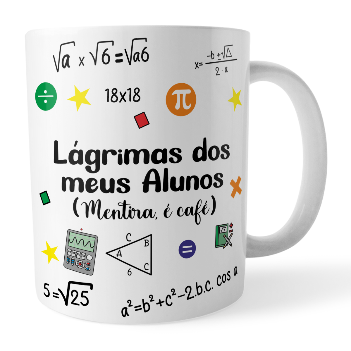 Caneca Xicara Prof. de Matemática Lágrimas dos Alunos Mentira é Café