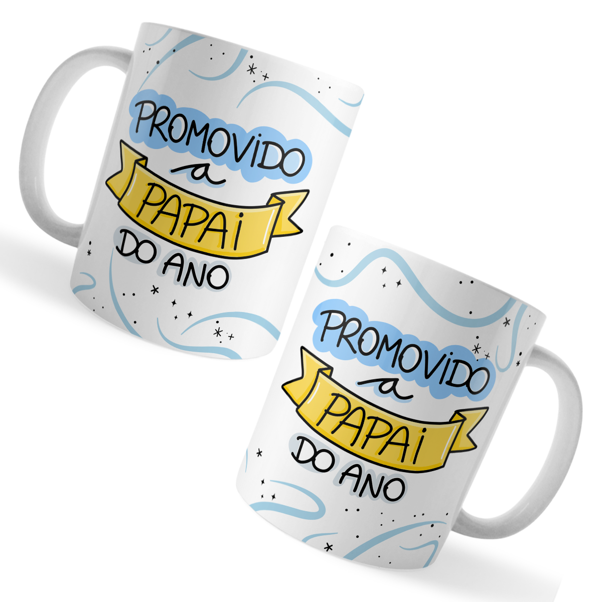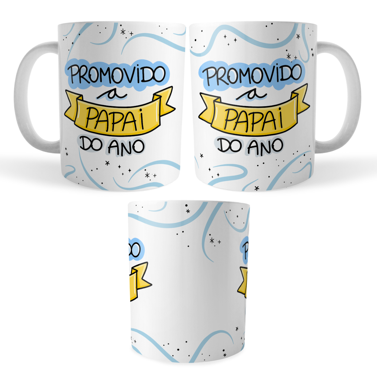 caneca xicara papai do ano, presente para pai, caneca paternidade, caneca promovido a papai, caneca anúncio gravidez, caneca arte pronta, caneca masculina, caneca 325ml